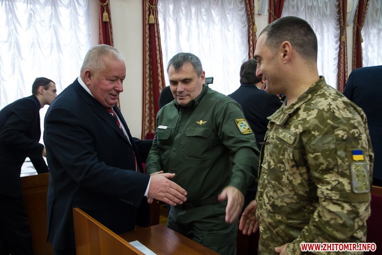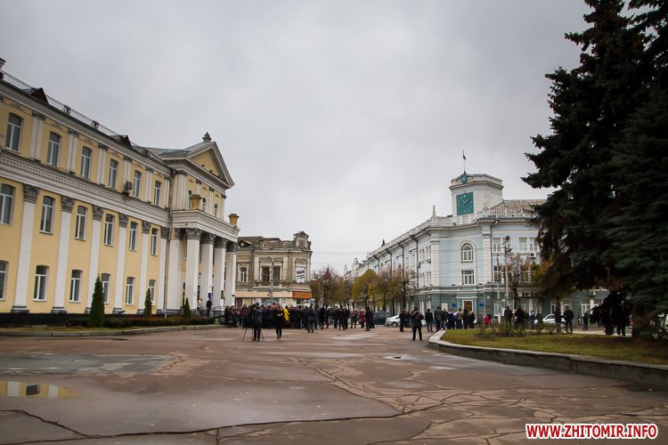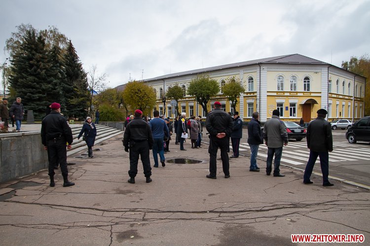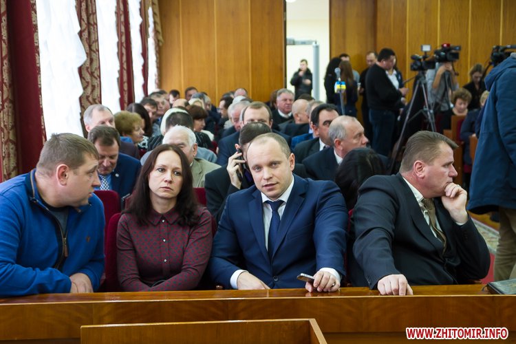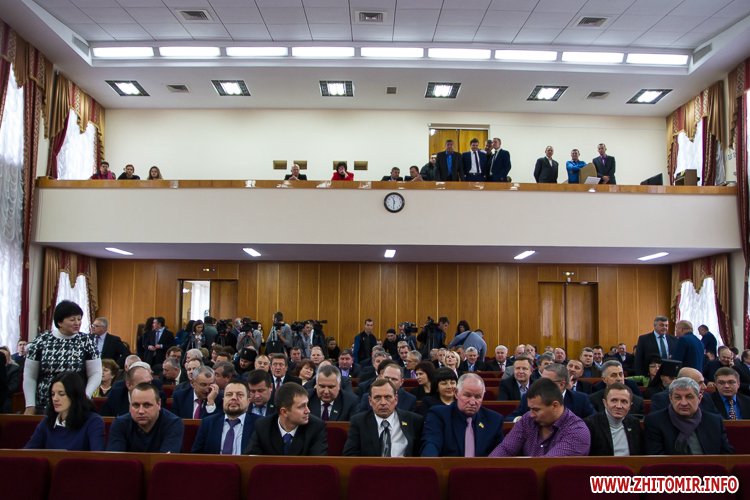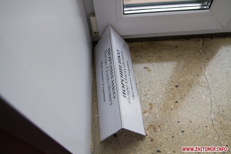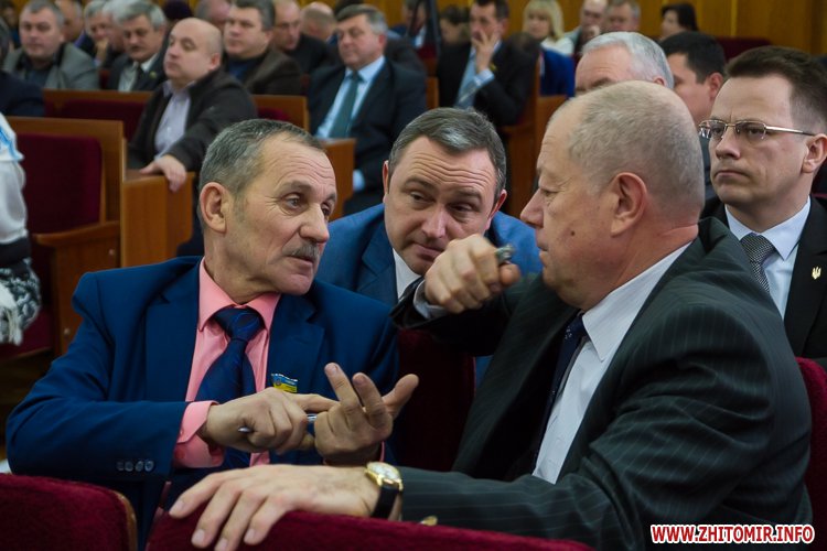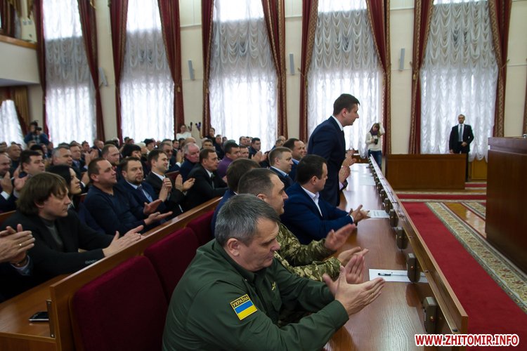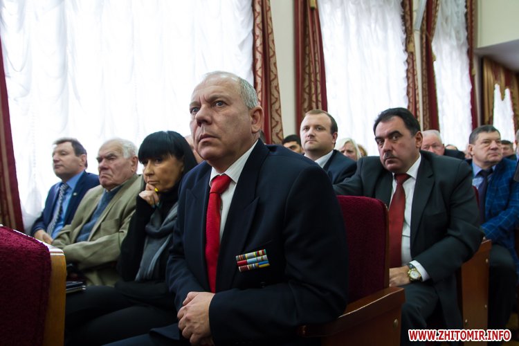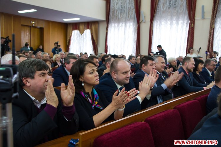 Президента ждали к 12.00, но он приехал с часовым опозданием. В своем выступлении Петр Порошенко говорил о помощи АТОшникам, децентрализации и анонсированном повышении зарплат. Он также хвалил энергичного вице-премьера Геннадия Зубко, который активно занимается децентрализацией, и благодарил бывшего губернатора Сергея Машковского, который в трудное время «подставил плечо». Речь президента, представление нового главы ОГА Игоря Гундича и его слова благодарности заняли в общей сложности 40 минут, после этого Порошенко поехал на житомирский завод «Кромберг энд Шуберт».