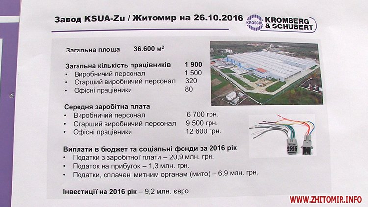 27 жовтня Петро Порошенко відвідав завод на околиці Житомира. В очікуванні приїзду президента, технічний директор «Кромберг енд Шуберт» Славомір Качмарек розповідає: візит Порошенка планували іще рік тому, сьогодні ж, каже, вже є чим пишатися. За рік роботи у підприємство інвестували понад 9 мільйонів євро та створили близько 2 тисяч робочих місць.