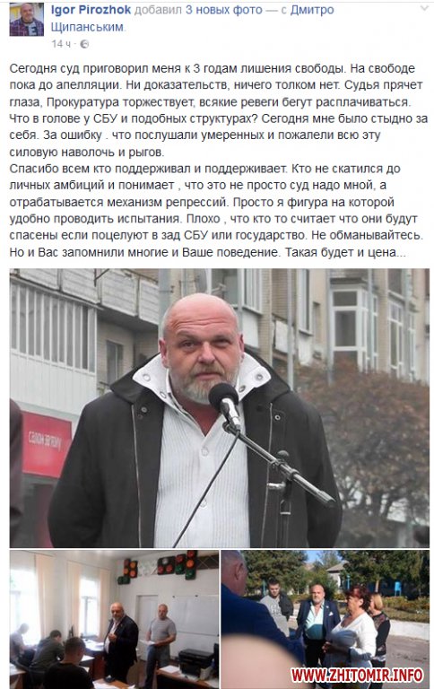Суд приговорил к трем годам лишения свободы Игоря Пирожка, который является членом общественного совета при Житомирской обгосадминистрации.