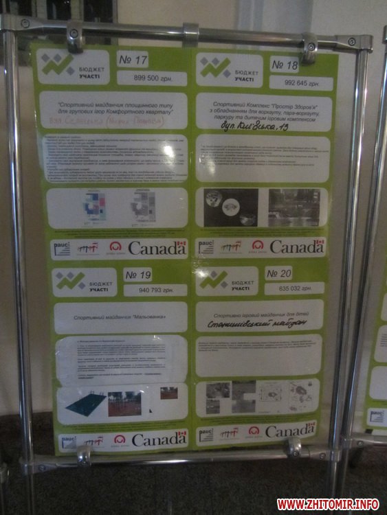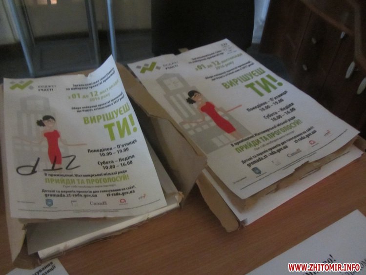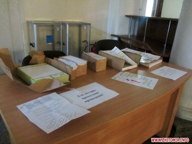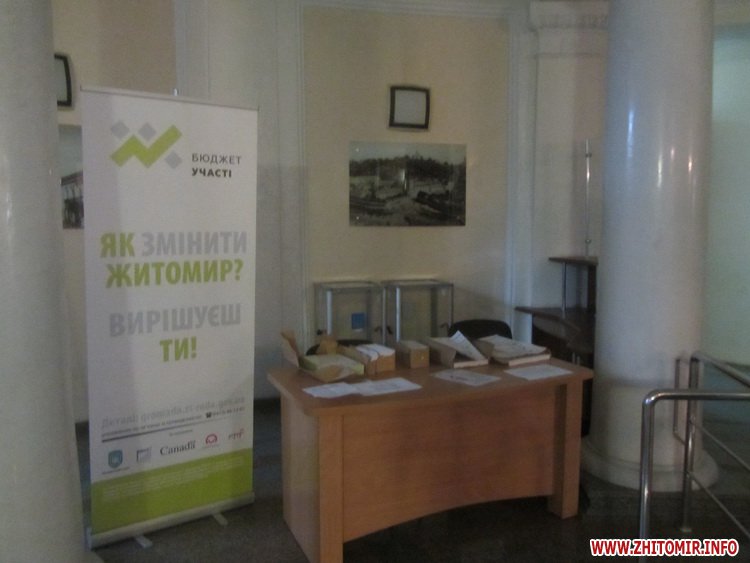 На першому поверсі Житомирської міської ради з 1 по 12 листопада триватиме загальноміське голосування за найкращі проектні пропозиції до бюджету участі, яких станом на 31 жовтня відібрали 56.