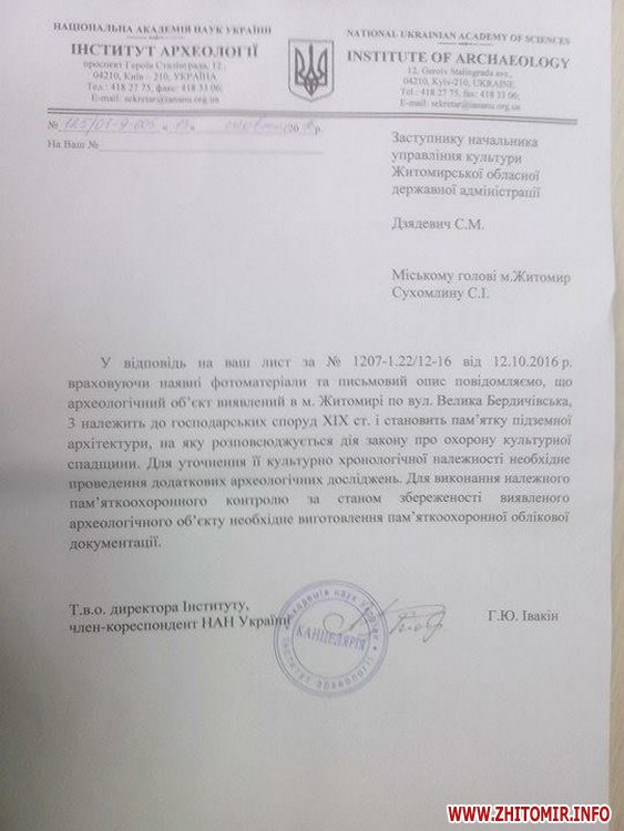 Старший науковий співробітник Інституту археології України Андрій Петраускас розповідає: підземелля на Бердичівській зафіксували, однак поки не будуть погоджені документи на дослідження даної ділянки, розкопки там заборонені і є незаконними.