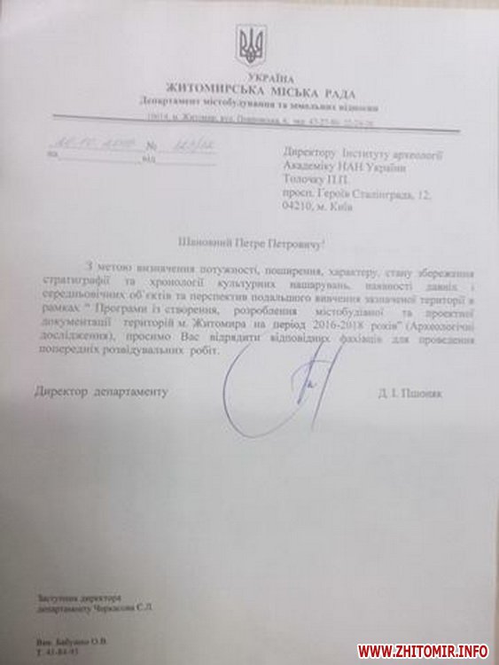 «Перед тим, як взагалі там починати роботи, потрібно поставити до відома мерію, ті служби, які відповідають за комунікацію в місті: тепломережі, електро мережі, зв’язок, ще якісь, про які я навіть не знаю. Ті роботи, які ви бачили у парку ідуть, там стос паперів такий, що я навіть вже не пам’ятаю з якими службами це погоджувалось. По-друге, потрібно взяти дозвіл у Міністерстві культури, оскільки це пам’ятка культурної спадщини, яка належить державі. Я не можу туди влазити без дозволу держави. От приблизно всім, хто задавали питання про роботу на Бердичівській, я на скільки зміг, постарався пояснити. Те, що можна зробити зараз, його зафіксували - так воно є. Потрібно з’ясувати його характер, обмін документації із зверненнями до обласного відділу культурної спадщини до інституту був. Інститут надіслав відповідь, ми чекаємо тепер від них відповідь на подальші роботи із цим об’єктом. Я говорив вже із тими, хто опікується організацією робіт у місті. Вони пообіцяли щось зробити: викликати поліцію, поставити до відома міську владу, а як воно на місці, я не в силах проконтролювати», - зазначає старший науковий співробітник Інституту археології НАН України Андрій Петраускас.
