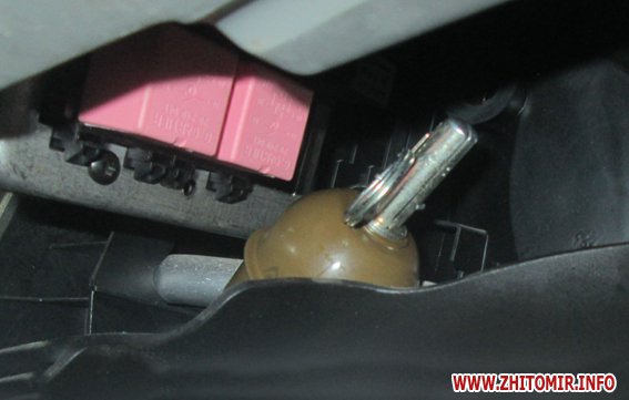 «Під час профілактичного відпрацювання району працівники поліції зупинили на автодорозі Бердичів-Вінниця неподалік с. Хажина автомобіль. У салоні, окрім водія, також знаходився 25-річний житель м. Житомира. Під час огляду транспортного засобу у салоні поліцейські виявили металевий предмет, за зовнішніми знаками схожий на гранату РГД-5 та запал УЗРГМ-2. Виявлене було вилучено та направлено на експертне дослідження. Відповідно до ч. 1 ст. 263 (Незаконне поводження зі зброєю, бойовими припасами або вибуховими речовинами) Кримінального кодексу України такі дії караються позбавленням волі на строк від 3 до 7 років», - йдеться у повідомленні.