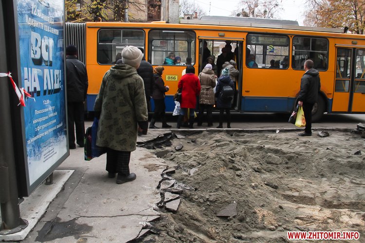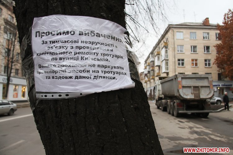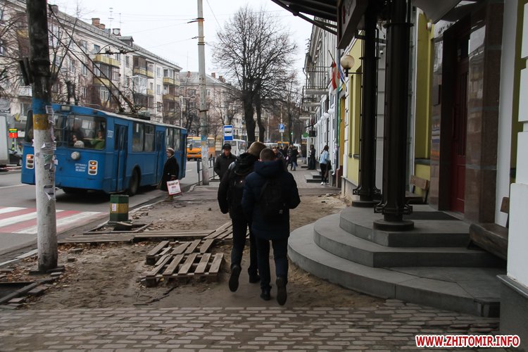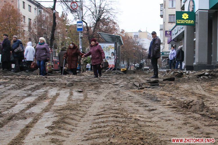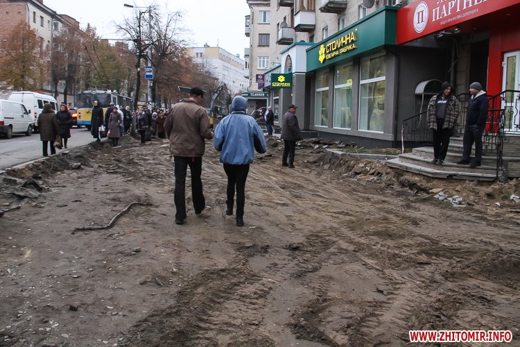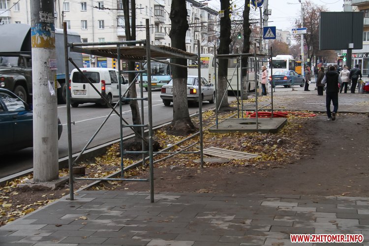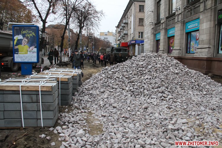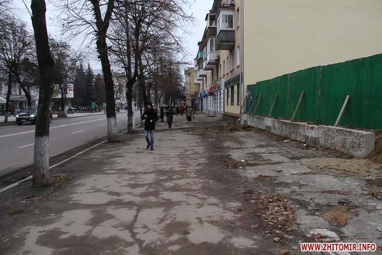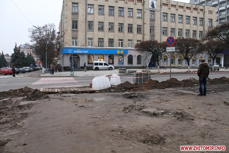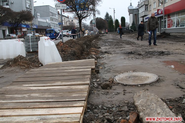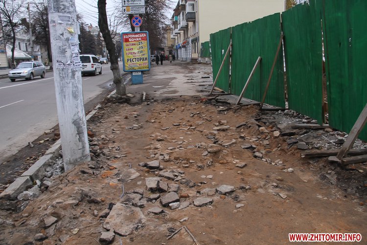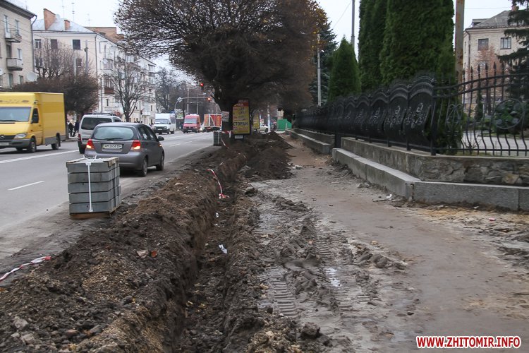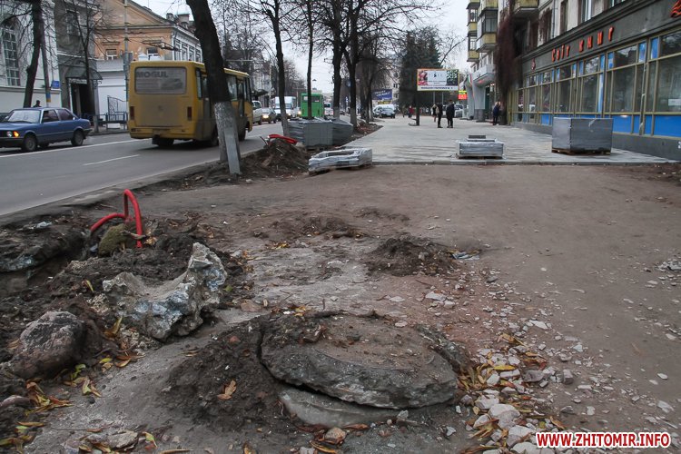 В комментарии Житомир.info 7 ноября мэр говорил, что реконструкция тротуаров не завершится, как планировали, до конца года: работы будут временно приостановлены и возобновятся весной, а до этого времени власти планируют провести новый тендер.