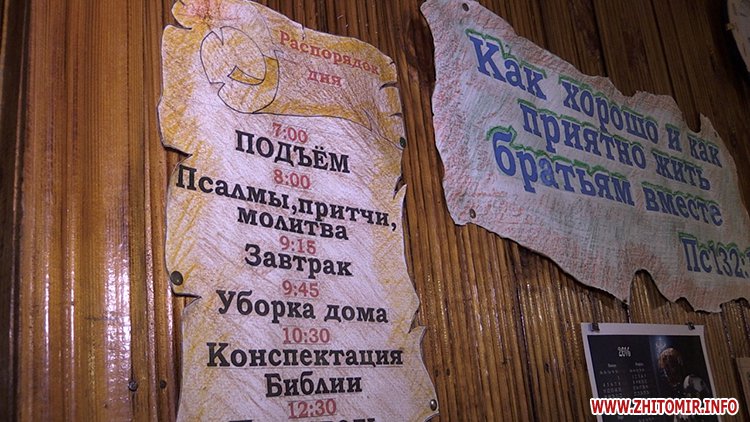 «8 година - ми розбираємо слово, читаємо псалми Давида і читаємо притчи Соломона. Потім загальна молитва, о 9-45 сніданок, прибираємо будинок, територію, слухаємо проповіді християнських проповідників, обід, час для себе, пишемо контрольну по конспектуванню Біблії», - говорить Михайло Кожухар.