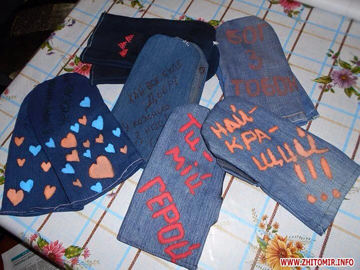 Житомирський волонтерський «Бабусин батальйон» понад рік продовжує шити білизну, спецовочні рукавиці та подушки для бійців АТО. Для виготовлення рукавиць їм знову треба старі джинси, які небайдужі можуть приносити до житомирського відділення ВБО «Турбота про літніх в Україні», що по вулиці Святослава Ріхтера, 31 (до перейменування – 1-го Травня).