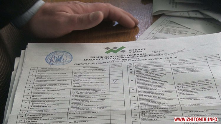 Як повідомляв Житомир.info, на першому поверсі Житомирської міської ради з 1 по 12 листопада тривало загальноміське голосування за 56 найкращих проектних пропозицій до бюджету участі. Деякі депутати намагалися вплинути на вибір житомирян під час голосування за проекту бюджету участі. Координатори проекту кажуть, вони знають про усі спроби вплинути на результати голосування, але переконані – перемогти зможуть виключно ті проекти, які важливі для більшості житомирян. Загалом, за 11 днів голосування за кращі проектні пропозиції бюджету участі проголосували понад 3500 житомирян.