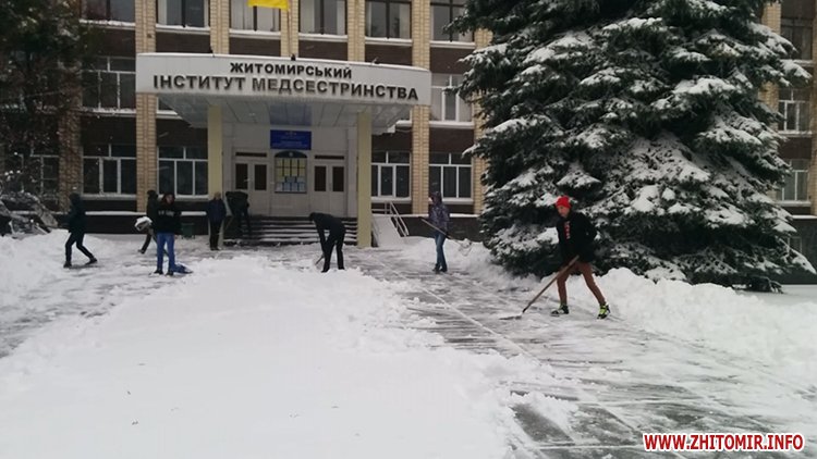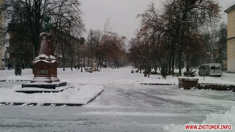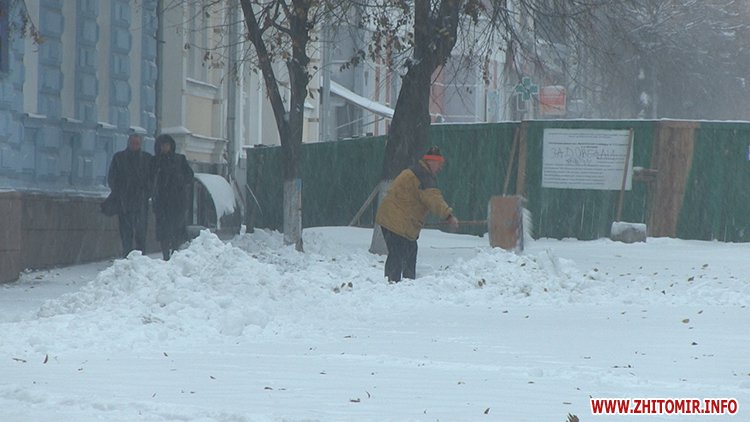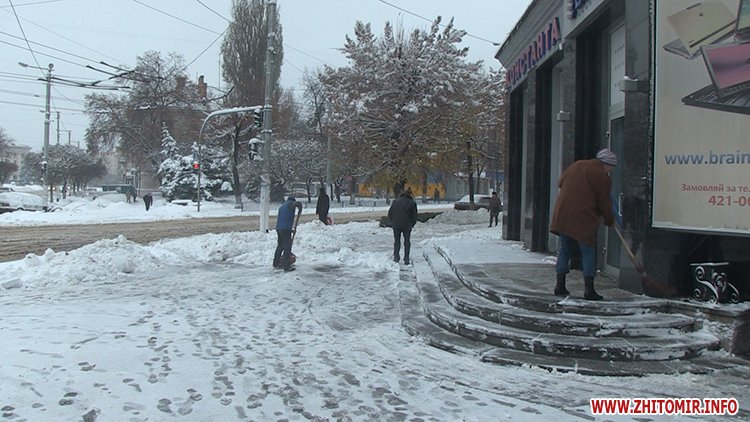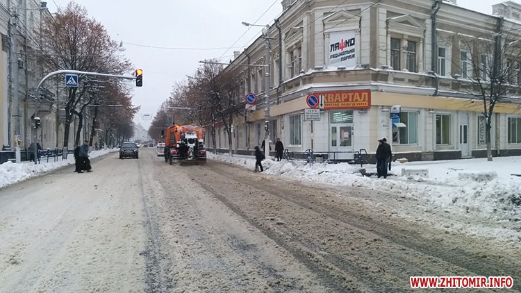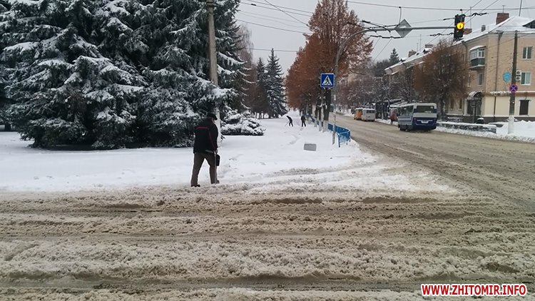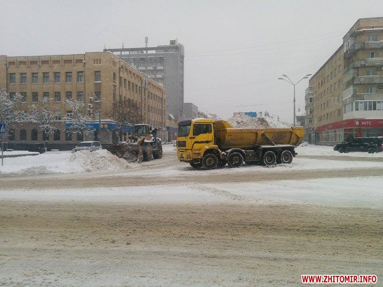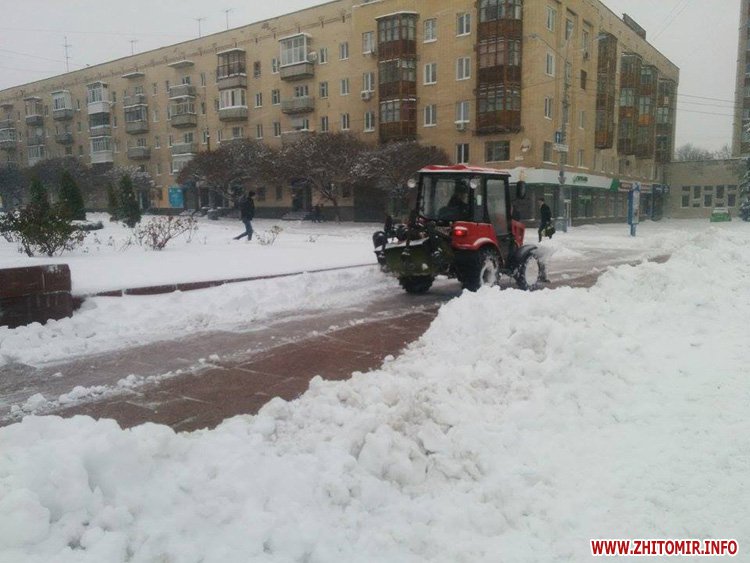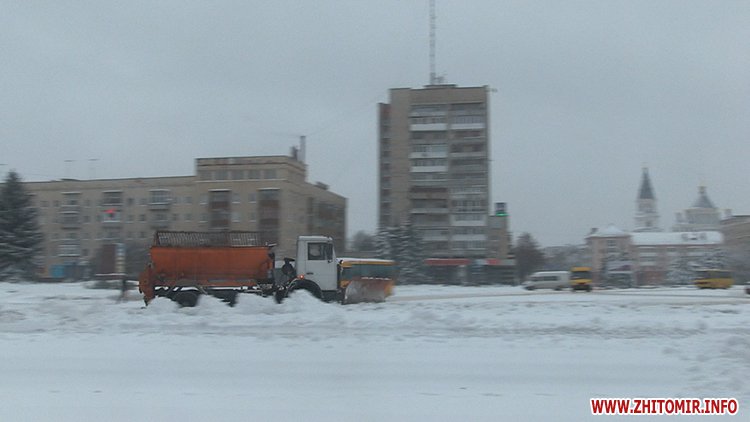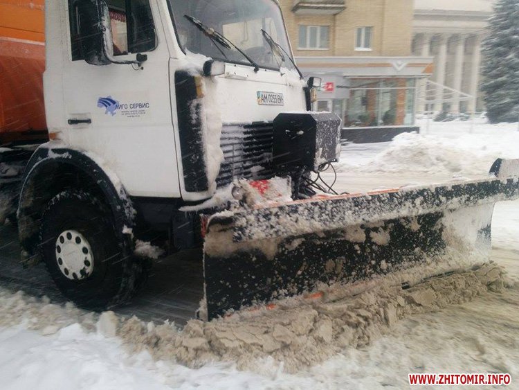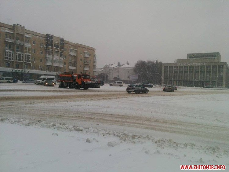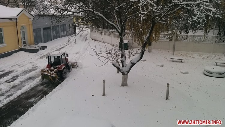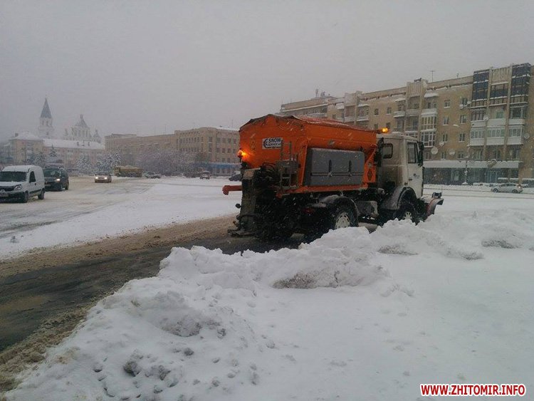 UPD: за інформацією Житомирської міської ради, актуальною станом на 13:37, для ліквідації наслідків негоди вже задіяно 25 одиниць техніки для прибирання вулиць міста (плужно-щіткові машини, піскороскидачі, грейдери) та 2 одиниці для прибирання скверів і зелених зон.