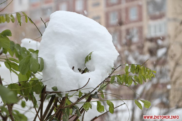 Синоптики ж, зі свого боку, прогнозують, що сніжитиме у Житомирі ще, принаймні, упродовж всієї ночі з 13 на 14 листопада при температурі повітря -2°С.