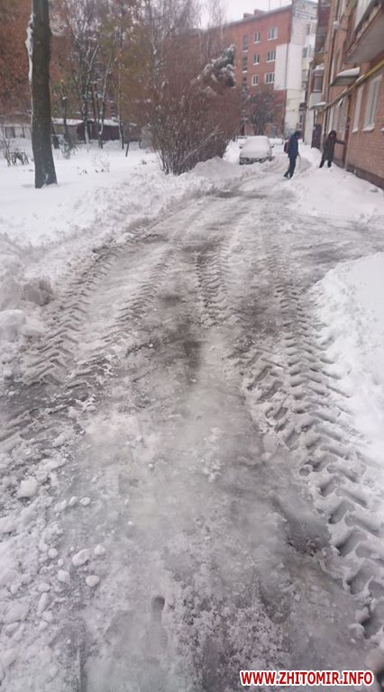 «В Житомире, в результате снегопада в ночь с 12 на 13 ноября, начаты работы по уборке улиц города. Для ликвидации последствий непогоды задействованы 25 единиц техники для уборки улиц города и 2 единицы для уборки скверов и зеленых зон. Для уборки мостов и путепроводов задействовано 3 бригады (14 человек). Для уборки придомовых территорий жилых домов города было задействовано 21 единица тротуарной-уборочных машин», - сообщал сайт мэрии днем 13 ноября.