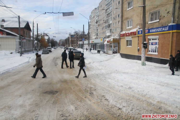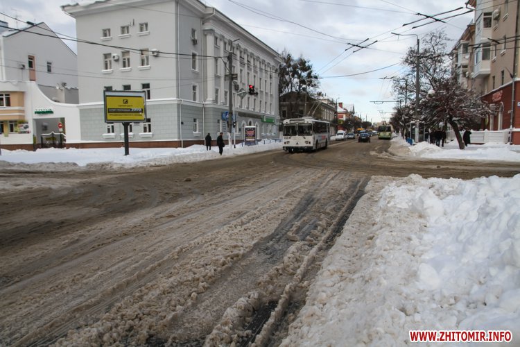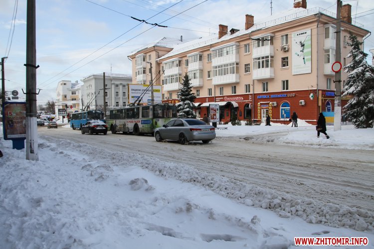 Як повідомляв Житомир.info, вранці 14 листопада на дорогах міста була снігова «каша», на вул.Любарська не змогли роз’їхатися два тролейбуси маршруту №15-а.