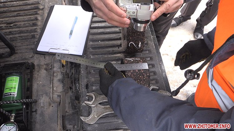 «Виникла необхідність в тому, щоб провести дослідження саме якості проб асфальту, який був покладений на прибудинковій території. З цією метою було замовлено експертизу, лабораторні дослідження в Київського ДП «Дорцентр» при «Укравтодорі», які мають сертифіковану відповідну лабораторію. Замовили експертизи, де буде досліджено якість і будуть розставлені всі крапки над відповідними зауваженнями, претензіями. Буде видно. Такі проби, наскільки мені відомо, не проводились жодного разу, тому це буде певною точкою відліку як для підрядників, так і для замовників, міської ради. Щоб ми в подальшому розуміли з ким працюємо і як витрачаються бюджетні кошти», - розповідає начальник контрольно-аналітичного відділу Житомирської міської ради Валентина Козяр.
