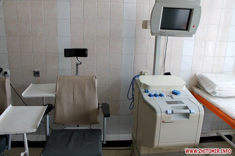 «Депутати на власні очі побачили, як працює комунальна установа «Житомирський обласний центр крові» Житомирської обласної ради. Керівник закладу Анатолій Чугрієв провів екскурсію, розповівши про принцип роботи установи та ознайомивши профільну комісію з матеріально-технічною базою центру. Варто зазначити, що обласний центр крові щорічно заготовляє до 10 тис. літрів крові, видається для переливання до 8 тис. доз свіжозамороженої плазми та більше 8 тис. доз еритроцитів. Минулого року в закладах охорони здоров’я проведено 18,5 тис. переливань компонентів крові.