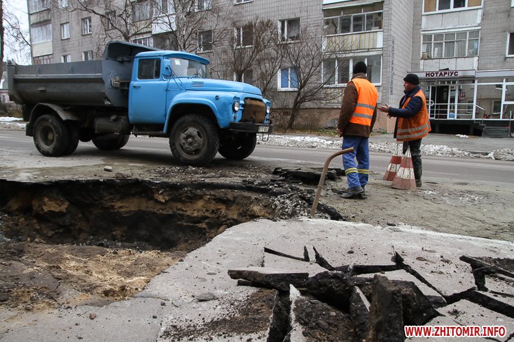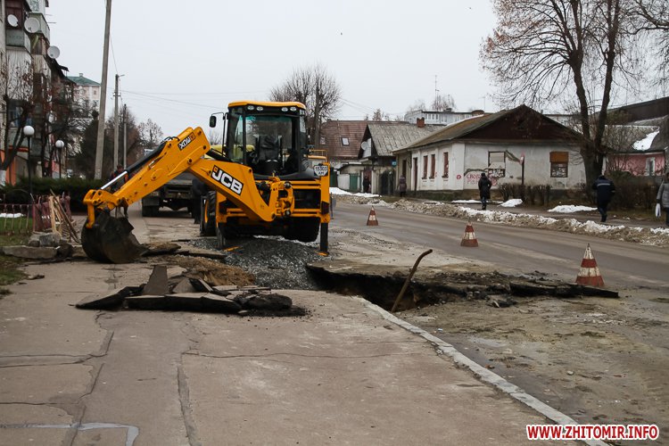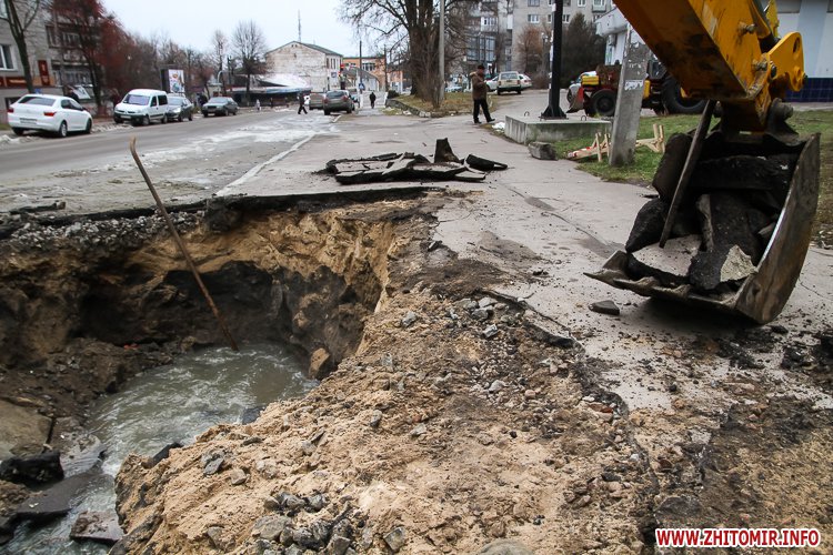 Як повідомляв Житомир.info, у Житомирі на вулиці Гагаріна провалився асфальт, у водоканалі кажуть – проблема з каналізаційним колектором.