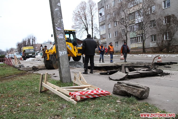 У Житомирі почали ремонтувати частину дороги на місці провалу асфальту по вулиці Гагаріна, що стався 20 листопада.