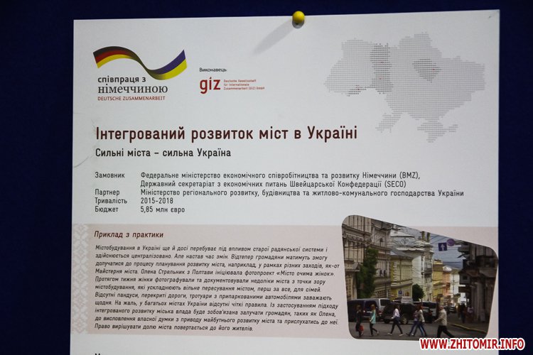 Разом з тим у Житомирі 26 листопада в рамках першого форуму «Інтегрований розвиток Житомира» планують представити паспорт міста, який базується на даних статистики, експертних думках і польових дослідженнях. Над ним житомирські чиновники працювали спільно з фахівцями GIZ.
