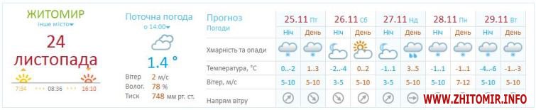 Уночі та вранці 25 листопада у Житомирській області прогнозують туман.