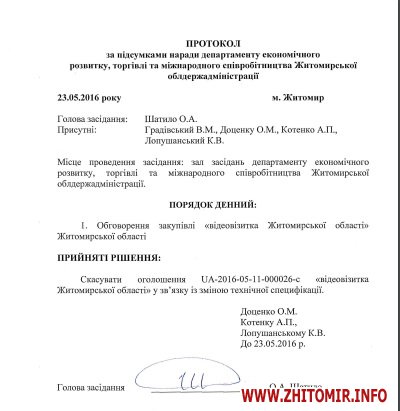 Як повідомляв Житомир.info, в жовтні 2016 року Житомирська ОДА оголосила тендер на придбання презентаційного трихвилинного відеоролика про визначні місця області, за що збиралася заплатити 10 тисяч гривень.