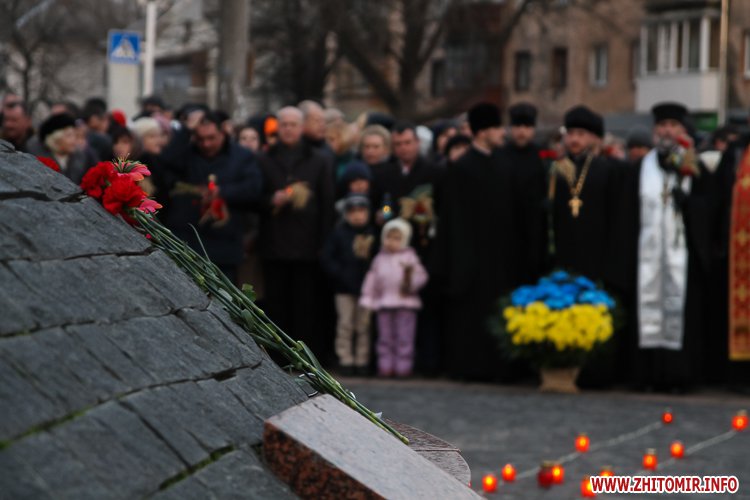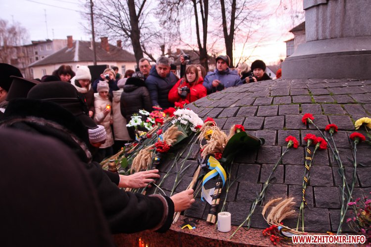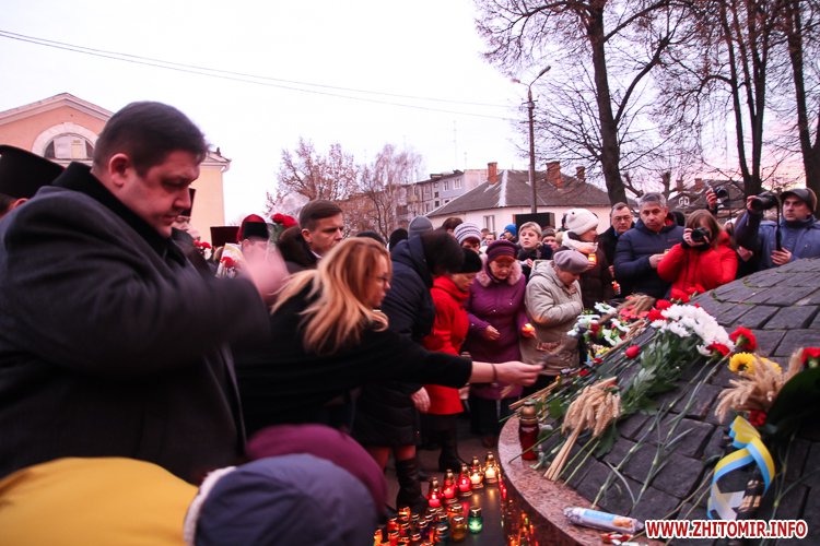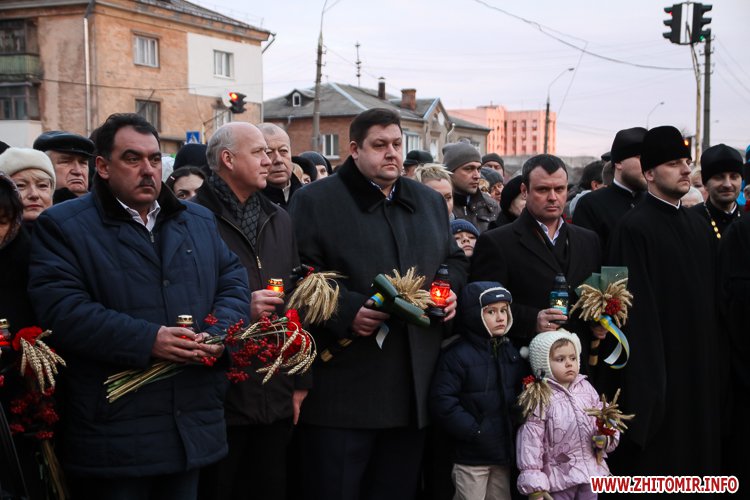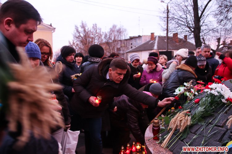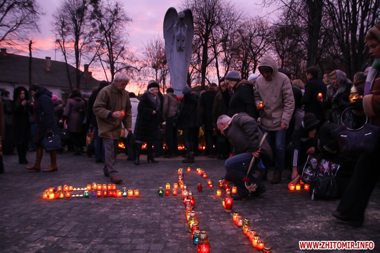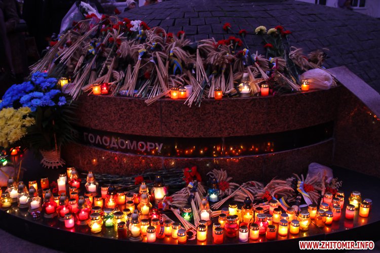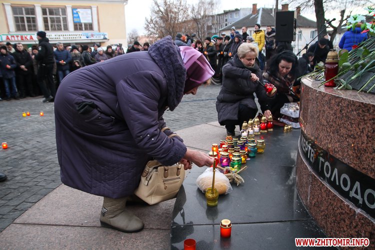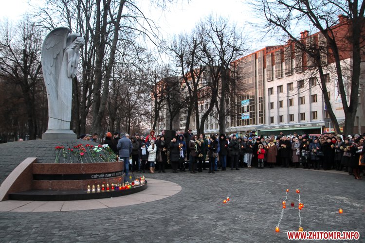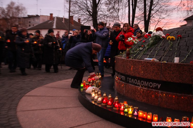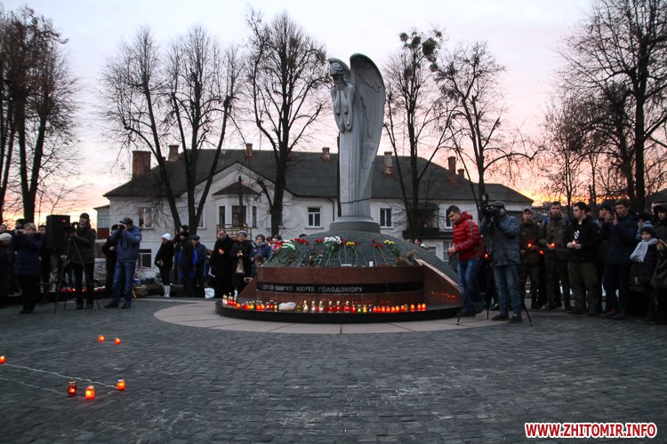 «Заходи до Дня пам’яті жертв голодоморів відбулись біля знаку «Сумуючий Янгол», де зібралися кілька сотень жителів міста, духовенство, представники влади, громадськості. На мітингу-реквієму також були присутні голова Житомирської облдержадміністрації Ігор Гундич, перший заступник голови облради Сергій Крамаренко, міський голова Сергій Сухомлин. Під цьогорічним гаслом «Голодомор не зламав» учасники мітингу-реквієму на знак скорботи і пам’яті про мільйони загублених життів українців о 16.00 долучились до загальнонаціональної хвилини пам’яті. Під час заходу відбулася поминальна панахида, покладання колосків, квітів та лампадок до пам’ятного знака «Сумуючий Янгол», - повідомляє прес-служба облдержадміністрації.