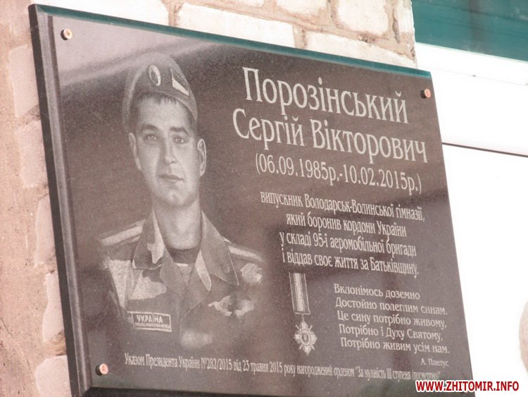 6 грудня у Хорошівській гімназії відбулося урочисте відкриття меморіальної дошки Сергію Порозінському – випускнику даної школи, герою, який загинув під час бойових дій в зоні АТО, захищаючи цілісність і недоторканість нашої держави.