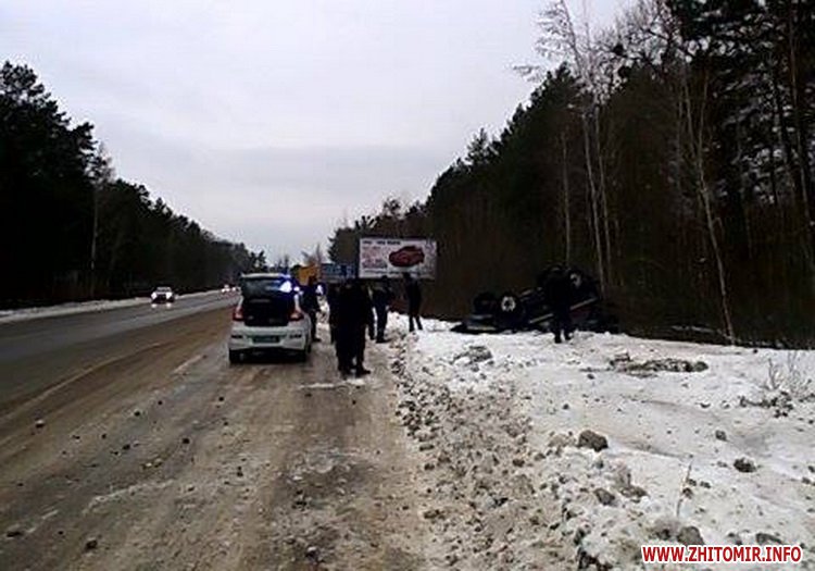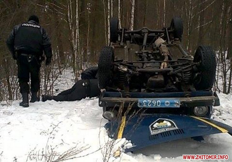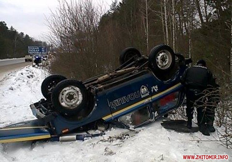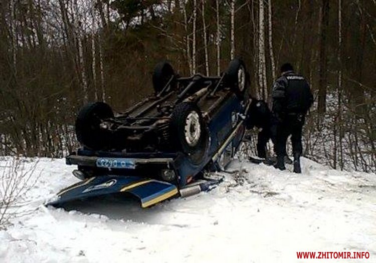 У Житомирі 8 грудня, близько 9:30 ранку, на Корбутівці сталася дорожньо-транспортна пригода. На дорозі перекинувся поліцейський автомобіль.