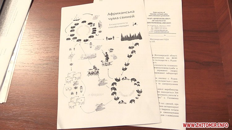 «Відповідно до повідомлення самого ФОП «Слідзевський» з 9 на 10 грудня у його господарстві загинуло 25 голів свиней. Господарство знаходиться у селі рудня-Городище Житомирського району, Житомирської області. при виїзді на місце було проведено розслідування, встановлено, що тварини хворіли ще з 15 числа почалося захворювання. У зв’язку з тим, що було завезено корми, які мали підозру на їх якість, все було списано на корми. Замінили корми, загибель продовжувалася, трупи тварин там на місці утилізувалися, спалювалися, але коли вже підійшло до того, що 25 голів за 1 ніч, і коли ми приїхали, подивилися картину, то побачили, що дійсно є проблема. Спеціалістами проведено розтин трупів,були встановлені і характерні, і нехарактерні зміни для чуми, температури у жодному разі не було підвищення, так, як нам пише література, відправили матеріал у лабораторію і отримали підтвердження, що дійсно африканська чума», - розповів секретар протиепізоотичної комісії Ігор Волківський.