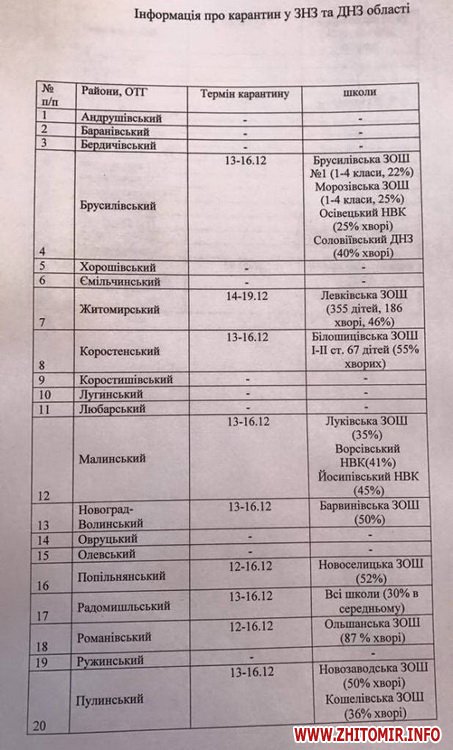 Як повідомляв Житомир.info, 13 грудня у відділі освіти Коростенської міської ради сказали, що в місті всі школи закриті на карантин.