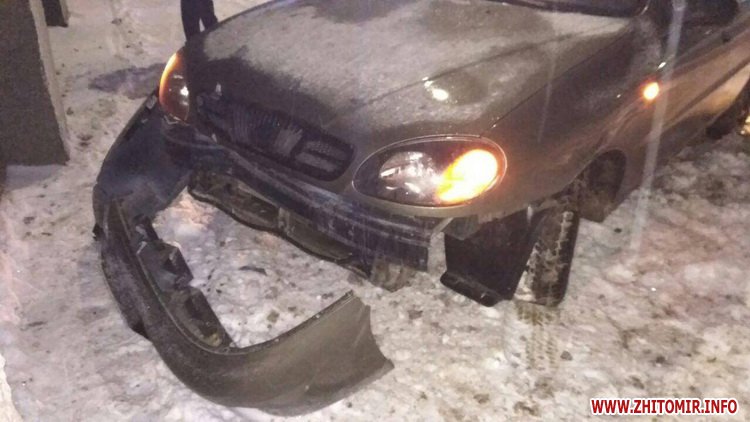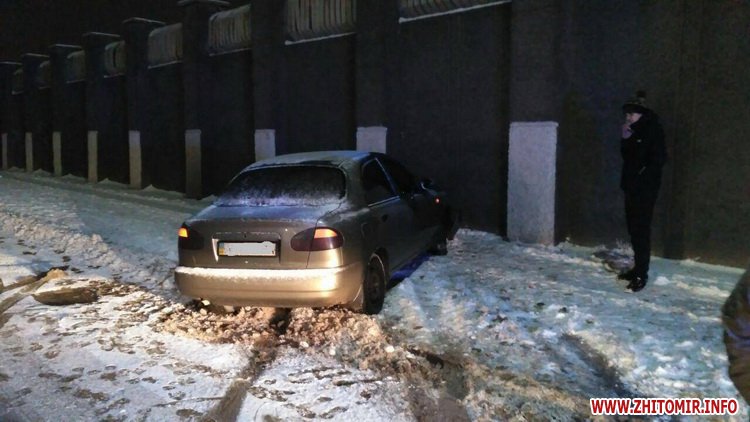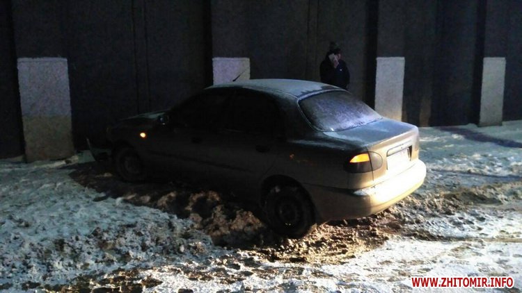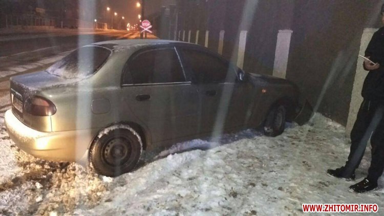 У Житомирі зранку 19 грудня водій автомобіля Daewoo врізався у бетонний паркан.