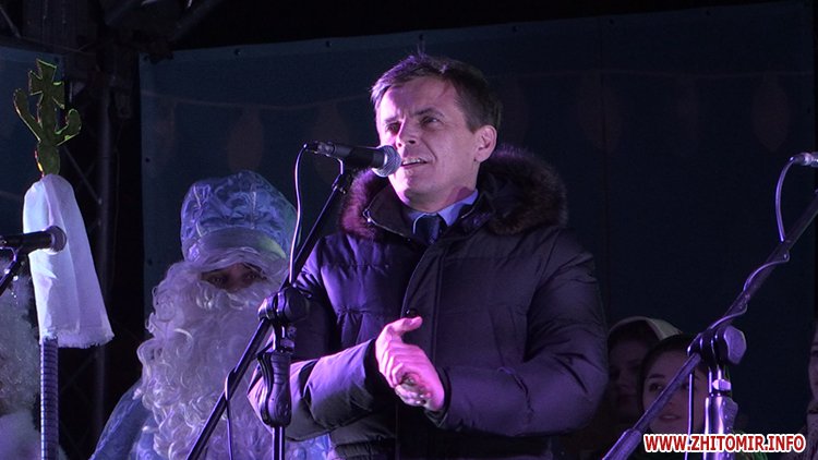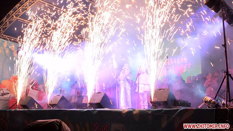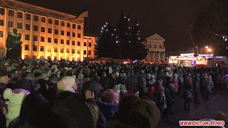 Перед житомирянами виступили творчі колективи міста, о 20 годині на сцені з’явився Святий Миколай, який привітав мешканців міста і запросив міського голову Сергія Сухомлина та народного депутата Борислава Розенблата.