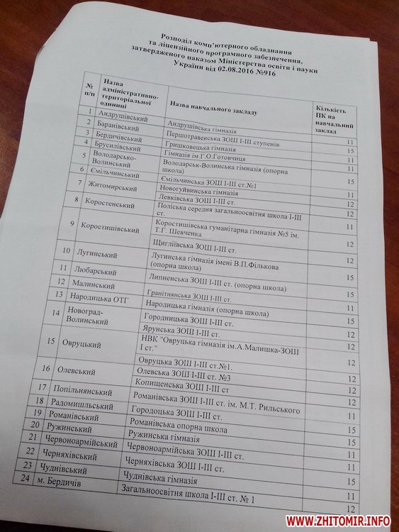 Як повідомляв Житомир.info, в рамках угоди Міністерства освіти і науки України з Урядом Китайської Народної Республіки щодо поставки комп’ютерного обладнання для загальноосвітніх навчальних закладів, Житомирська область отримає 834 одиниці комп’ютерної техніки. Крім цього, усі надані комп’ютери, за домовленістю МОН з компанією Microsoft, будуть забезпечені ліцензійними програмами та сервісним обслуговуванням. Згідно з графіком, затвердженим МОН, управління освіти і науки Житомирської облдержадміністрації 20 грудня отримало 834 комплекти комп’ютерної техніки та ліцензійного програмного забезпечення.
