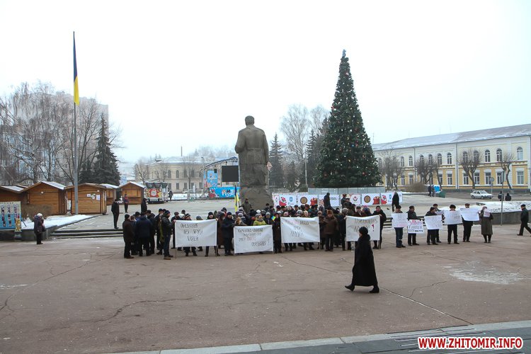 Як повідомляв Житомир.info, 22 грудня близько 9.30 під стінами Житомирської обласної державної адміністрації та облради на майдані Корольова люди зібралися на акцію протесту.