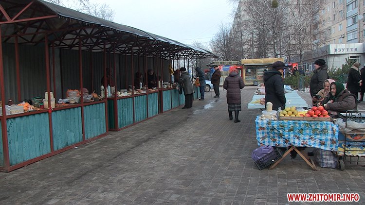 Аби припинити стихійну торгівлю на Довженка у Житомирі, іще більше 10 років тому, там створили залізний намет із прилавками, куди господарники можуть приходити і продавати сільськогосподарську продукцію та продукцію власного виробництва. Тут: овочі, консервація, яйця, молочні продукти і кожен припрошає до свого прилавку.