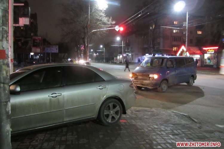 24 декабря в Житомире перекрестке улиц Киевская-Князей Острожских столкнулись легковой автомобиль Mazda и микроавтобус Volkswagen Transporter.