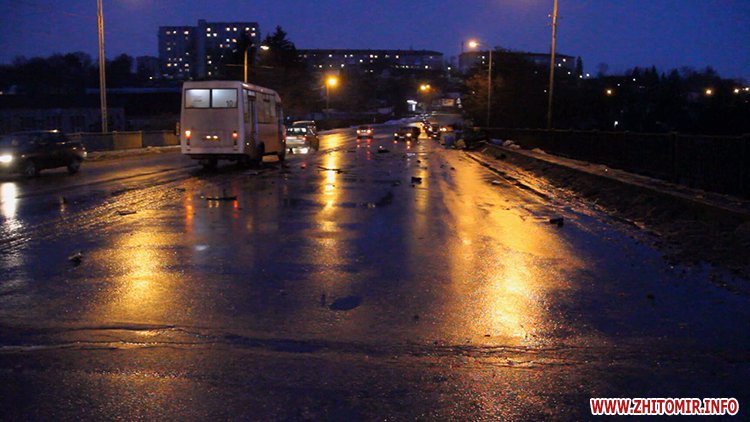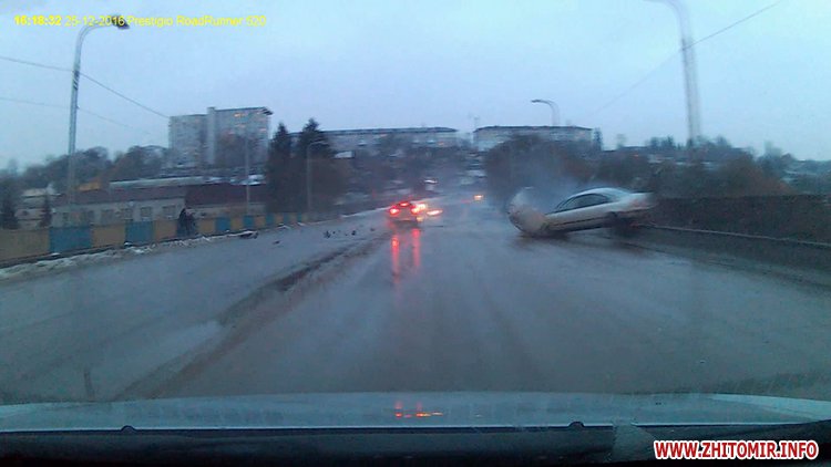25 декабря в Житомире, на Бердичевском мосту, около 16.00 произошла авария с участием легковых автомобилей Volkswagen Passat и ВАЗ.