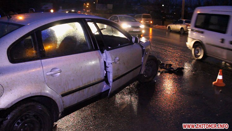 Как сообщал Житомир.info, вечером 24 декабря на перекрестке Киевская-Князей Острожских столкнулись микроавтобус Volkswagen и Mazda: от удара легковушка вылетела на тротуар и въехала в магазин.