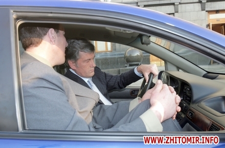 Вручение ключей от автомобиля состоялось во дворе Секретариата Президента Украины. Виктор Ющенко лично сел за руль и проехал вместе с Леонидом