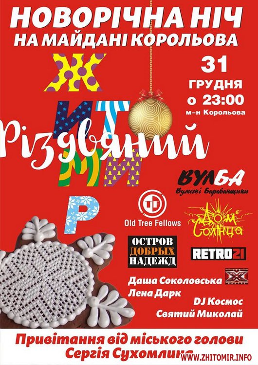 Нагадаємо, вже традиційно дійство на майдані Корольова у новорічну ніч має назву «На щастя, на долю, на Рік Новий».