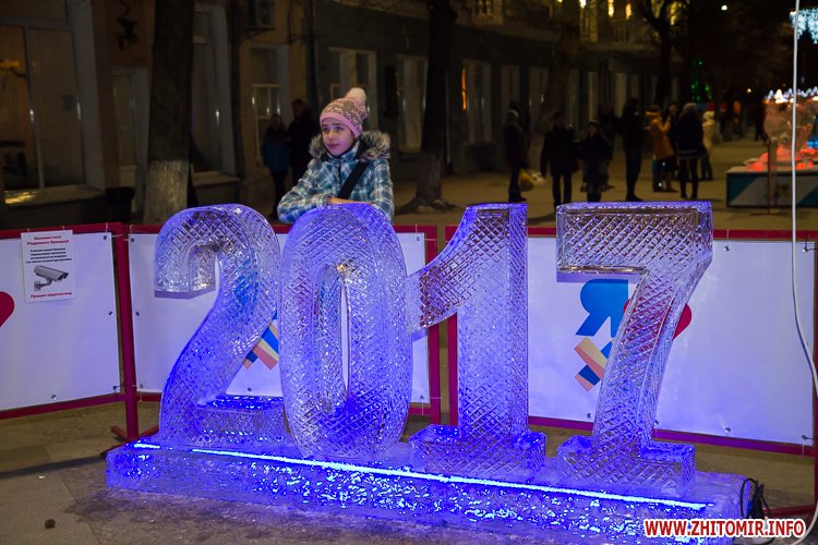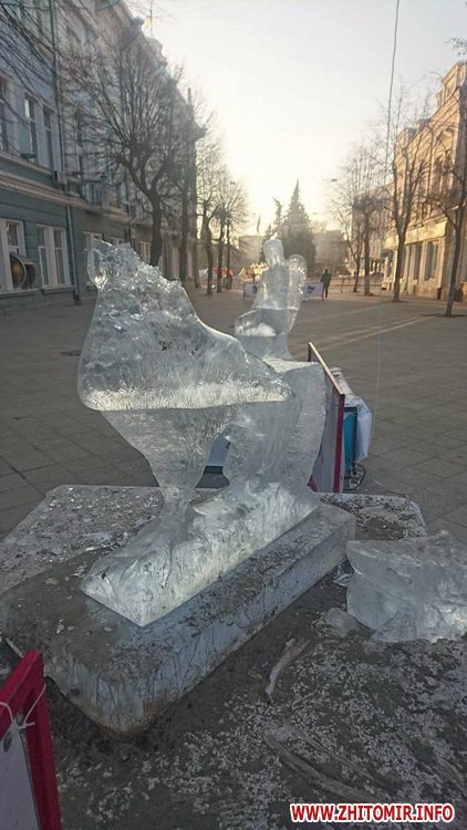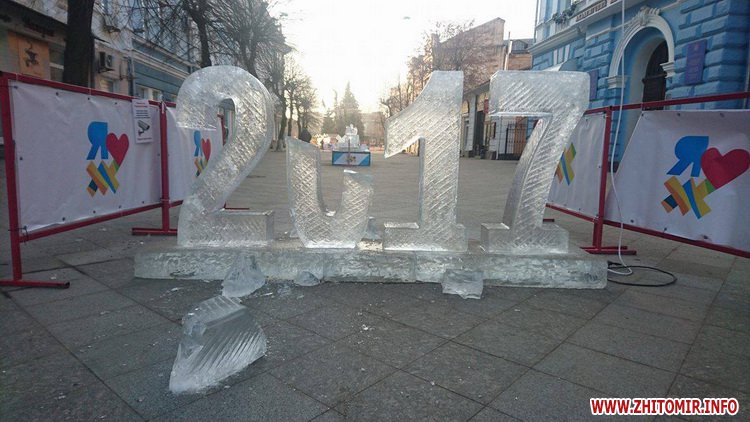 У ніч на 2 січня дві льодових скульптури на вул. Михайлівській у Житомирі зазнали нападу – вандали пошкодили число «2017» та символ року – півня.