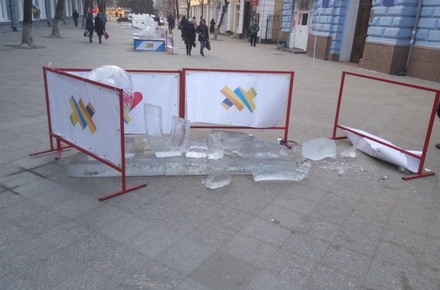 Нагадаємо, в ніч на 2 січня на дитячій локації Різдвяного ярмарку пошкодили льодяну фігуру «2017» та розбили символ року - півня. Третього січня її дотрощили невідомі. Поряд із фігурами й досі висять оголошення, в яких відвідувачів просять не вилазити на підставки і не чіпати лід руками, а також попереджають про відеоспостереження.