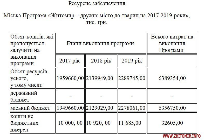 «Основною метою Програми є зменшення кількості безпритульних тварин у м. Житомирі на основі гуманного та відповідального ставлення до них, вживання заходів щодо охорони тваринного світу, створення більш комфортних умов для життя людей, покращення санітарно-епідеміологічного стану міста, а саме, розробка та впровадження нормативно-правових, методичних, просвітницьких заходів щодо гуманного поводження з безпритульними та домашніми тваринами; організація системи обліку, реєстрації та електронної ідентифікації тварин; створення ветеринарної клініки та кабінету функціональної діагностики, центру каністерапії, магазину товарів для тварин, фотостудії, кінологічного центру, облаштування місць та зон для вигулу собак», - зазначено у проекті програми.
