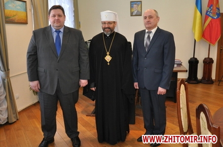 Предстоятель Української Греко-Католицької Церкви Святослав Шевчук звернувся до керівників області з проханням допомогти у виділенні земельних ділянок для будiвництва храмiв у м. Радомишлі та Житомирі. А також висловив надію на те, представники УГКЦ повноцінно долучатимуться до життя та діяльності громади Житомира і співпраця з владою стане ще тіснішою у майбутньому.