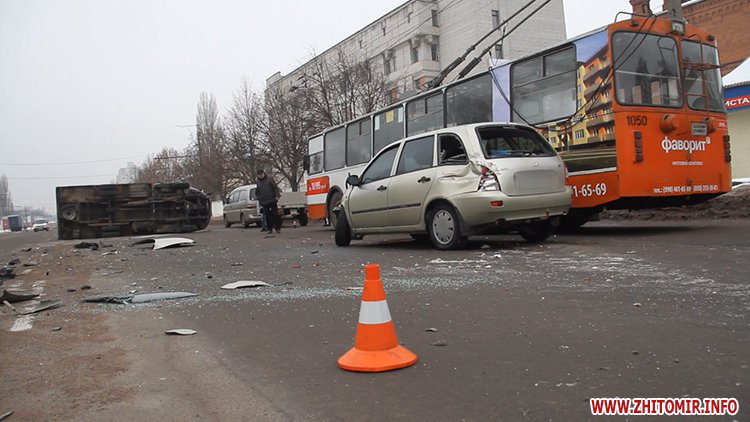 18 января в Житомире на проспекте Мира произошла авария с участием легкового автомобиля Lada и грузовой ГАЗели.
