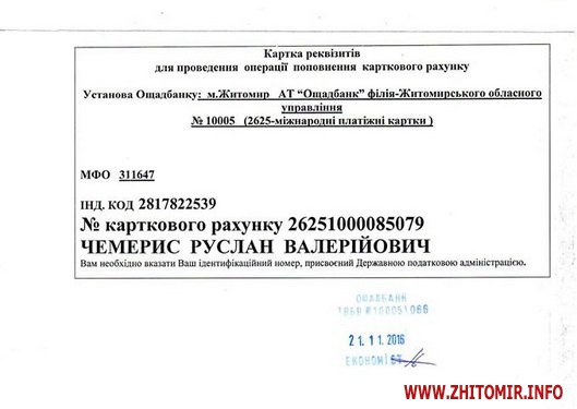 У соцмережі також повідомляють, що спеціально для допомоги хлопчику житомирський магазин «Оптика «Помаранч» 4-5 лютого 2017 року влаштує благодійну акцію – всі кошти за офтальмологічне обстеження пацієнтів та денна виручка закладу будуть перераховані батькам дитини.