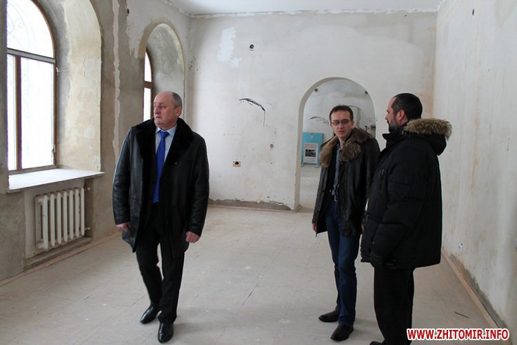 Голова Житомирської обласної ради Володимир Ширма перевірив, як іде ремонт в будівлі колишньої міської магістратури, розміщеної Замковій горі в обласному центрі.
