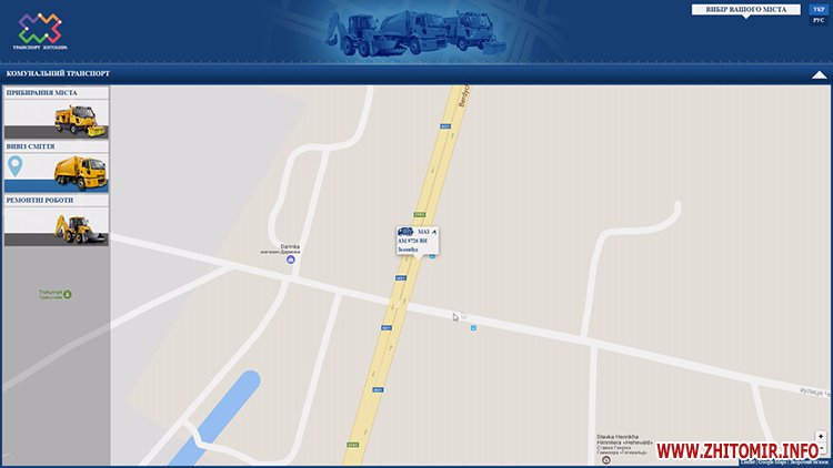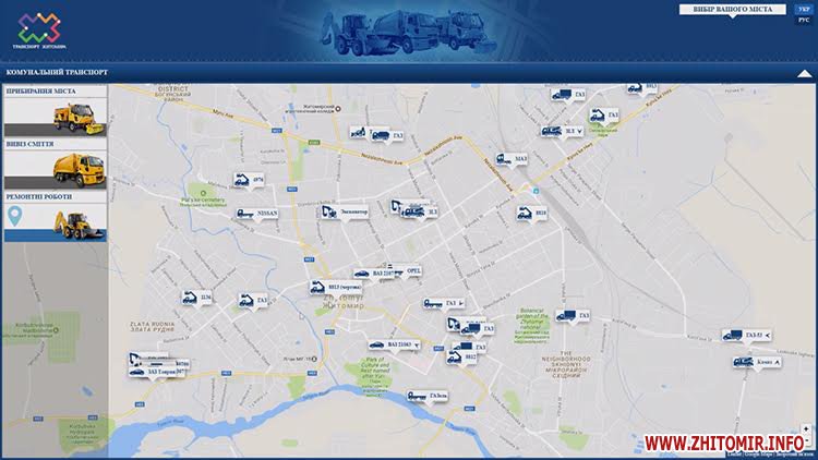Контролювати роботу комунального транспорту у реальному часі відтепер можуть житомиряни. Компанія «Дозор» розробила вебсайт «Моніторинг комунального транспорту». Зайшовши на сайт comm.dozor.tech кожен житомирян в режимі реального часу може бачити всю комунальну техніку у місті.