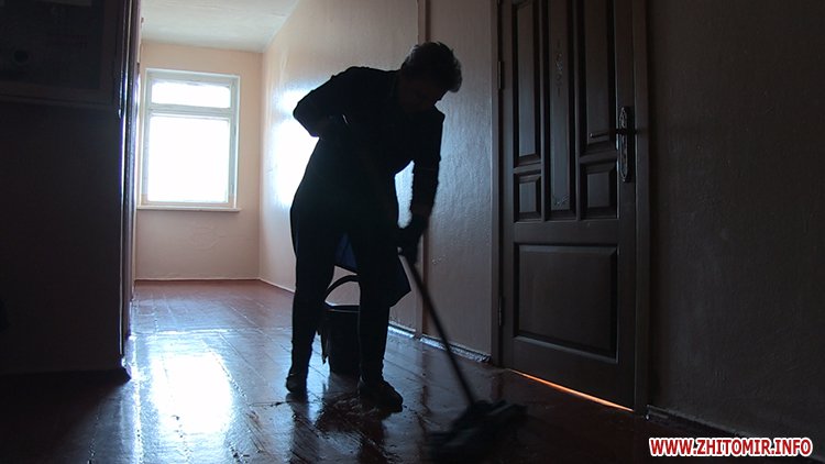 У Житомирській гуманітарній гімназії №23 триває карантин, який запровадили через отруєння дітей. Після повної дезінфекції приміщень навчального закладу вчителі та техпрацівники другий день проводять генеральне прибирання. Директор гімназії Ніна Купрійчук розповідає: ретельно вимивають підлогу в коридорах, класах і вбиральнях.