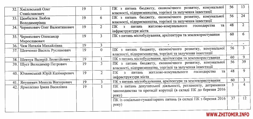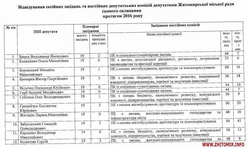 Лише 10 з 42 депутатів Житомирської міської ради не пропустили жодного з 19 пленарних засідань сесій у 2016 році.