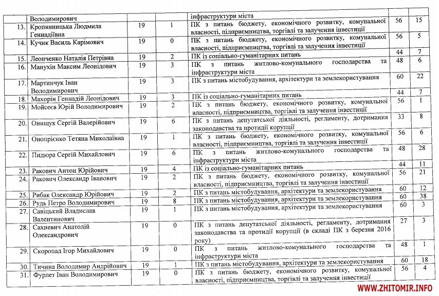 Як повідомляв Житомир.info, Житомирська міська рада сьомого скликання почала свою роботу 20 листопада 2015 року, 42 депутати представляють шість партій: Блок Петра Порошенка «Солідарність» - 11, ВО «Батьківщина» - 10, Об’єднання «Самопоміч» - 7, Опозиційний блок – 5, ВО «Свобода», - 5, Радикальна партія Олега Ляшка – 4.