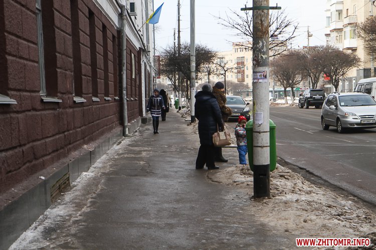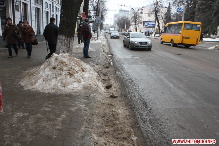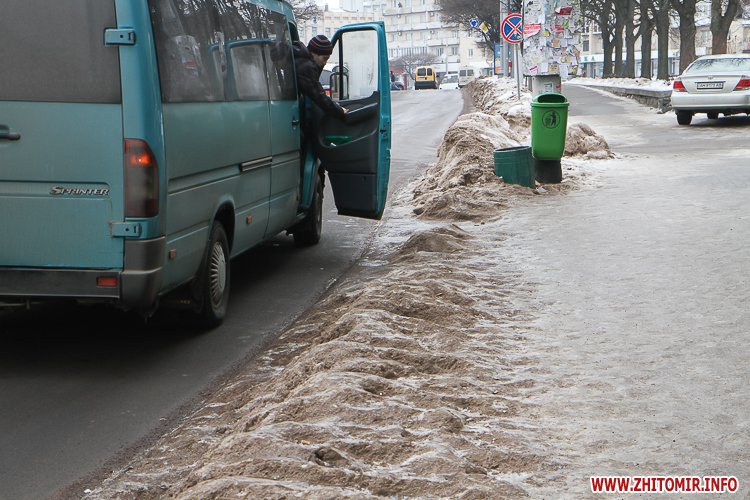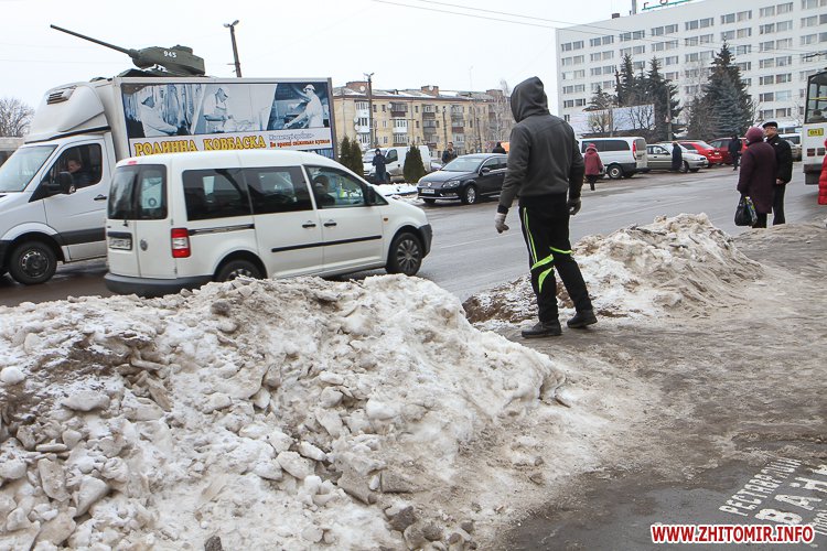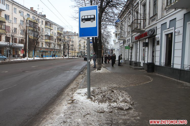 Станом на 24 січня в центрі Житомира найкраще прибраними можна вважати зупинки громадського транспорту біля кінотеатру «Україна» та міської ради на Великій Бердичівській.