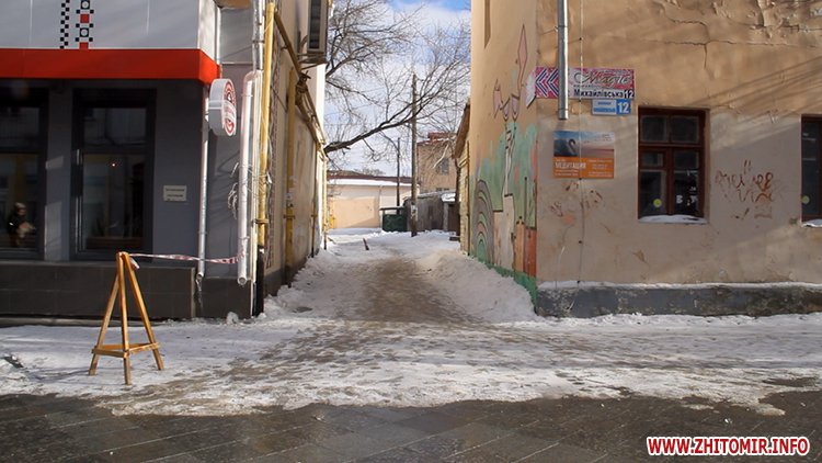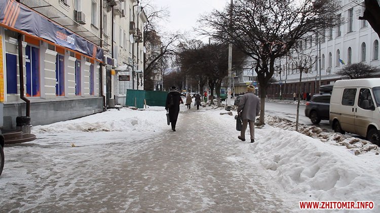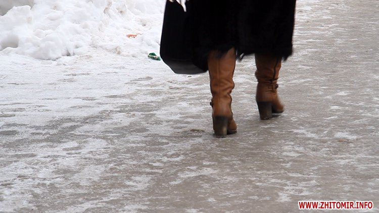 Житомирський міський голова пояснює: так сталося, бо коли випав сніг, комунальні служби не впорались із прибиранням тротуарів, тому і утворилась ожеледь. Каже: щоб виправити ситуацію, навіть застосували спеціальну хімію, та вона не дала бажаного результату. Тепер, щоб прибрати тротуари від льодового покриву, потрібно застосовувати спеціальну техніку, якої в місті немає. Залишається одне - чекати потепління.